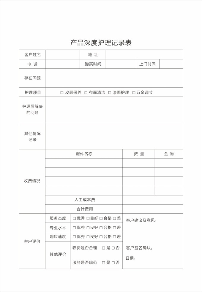 按要求認真填寫服務記錄單據并請顧客填寫相應內容及簽字,離開顧客處時除了與顧客本人告別外,還需要向有關負責人打招呼,詢問是否還有其他問題,當得到顧客的滿意允許后,方可離開。